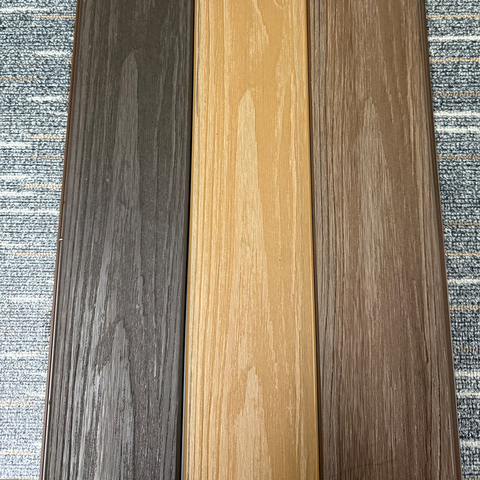 Moderno Ecológico Antiestático 3D Grano de madera WPC Revestimiento de pared Impermeable Exterior Bajo mantenimiento Co-Extrusión Madera Plástico